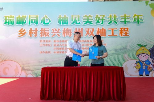近日,瑞众保险与中国邮政签署战略合作协议,以“瑞邮同心 柚见美好共丰年”乡村振兴梅州双柚工程为契机,发挥梅州金柚品质优势、邮政物流网点优势与瑞众险企资源优势,为梅州乡村振兴注入新动能,绘就“产业旺、农户富、乡村美”的乡村振兴新画卷。
